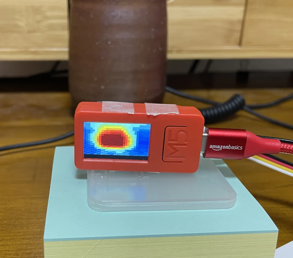 そもそも取得できるデータは8x8の64個について温度を取得することす。このデータをサーバーに登録することが目的です。しかし、見た目をもう少し何とかできないかなと思いました。せっかくM5にはLCDがついていて、いろいろと表示を制限できるのですから、見た目も少しはそれっぽくしたいじゃないですか。